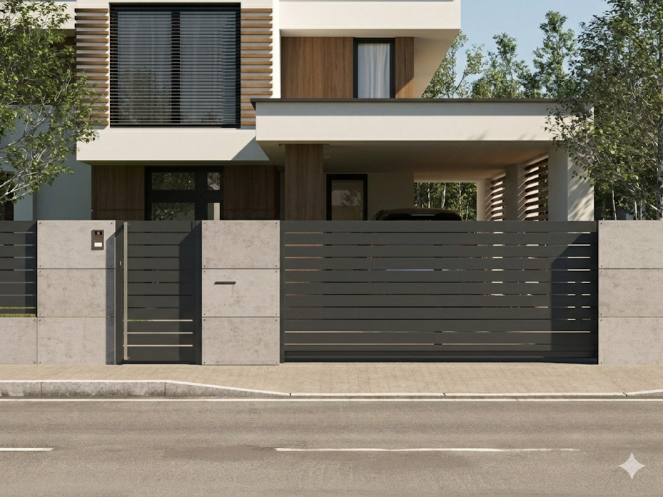 Moderné hliníkové a oceľove ploty a brány vyrábame na mieru podľa požiadaviek našich zákazníkov. Všetky ploty a brány, vyrábame z hliníkových a z oceľových materiálov, ktoré sú povrchovo upravené práškovými farbami. Brány vyrábame v rôznych prevedeniach ako napríklad samonosné, koľajové a krídlové . Všetky typy brán vám vieme dodať aj s elektrickým pohonom.Ponúkame vám aj doplnky,ako poštové stĺpik,technické stĺpiky a kontajnerové stojiská